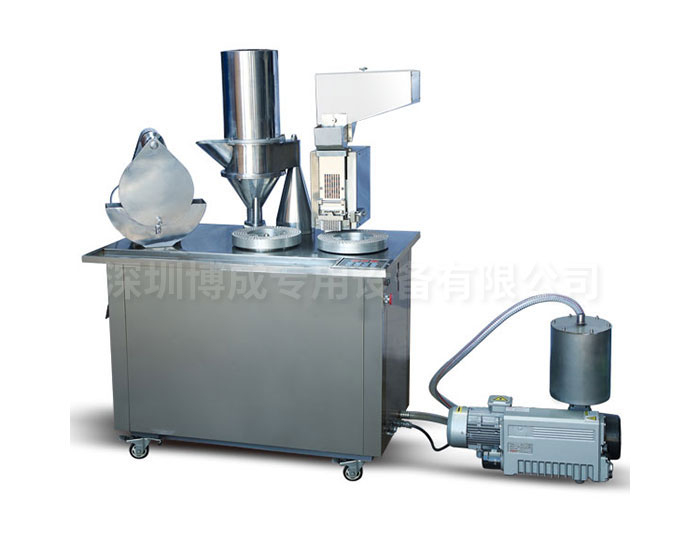 本機由送囊調(diào)頭分離機構(gòu)、藥料充填機構(gòu)、鎖緊機構(gòu)、變頻調(diào)速機構(gòu)、氣動控制和電氣控制系統(tǒng)、保護(hù)裝置等部件以及真空泵和空氣壓縮機(客戶自備)組成。國產(chǎn)或進(jìn)口機制膠囊都可適用,成品合格率達(dá)到98%以上。